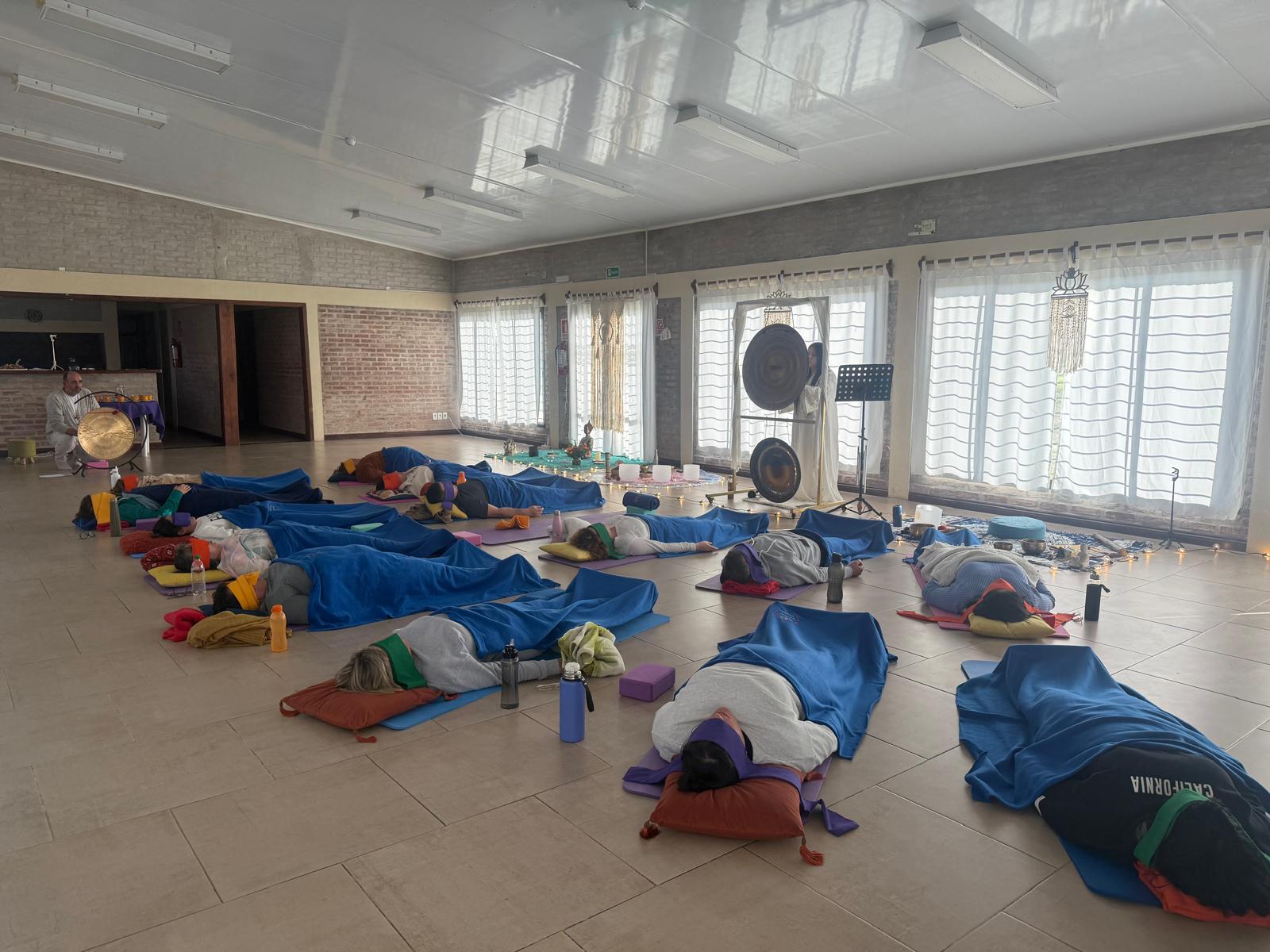 El Baño de Gong se extiende por 45 minutos. La mayoría de la gente entra en un estado de meditación o se duerme. Al finalizar el Baño de Gong, los participantes van volviendo poco a poco al aquí y ahora.